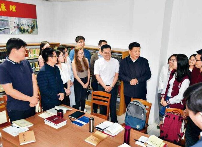 2018年5月2日,中共中央总书记、国家主席、中央军委主席习近平来到北京大学考察。这是习近平在北京大学马克思主义学院,与正在就“解读新时代”进行座谈交流的中外学生亲切交谈。 新华社记者 李涛 摄