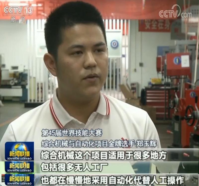 走进广东机械技师学院的教室,一群年轻人正忙着练习操作。他叫郑玉辉,前不久刚获得了第45届世界技能大赛综合机械与自动化项目的金牌。郑玉辉告诉我们,此前,巴西在这个项目上已经连续三届取得金牌,他能够代表中国拿到金牌,最根本的原因就在于中国制造迈向中高端,留给技能人才的舞台越来越宽广。