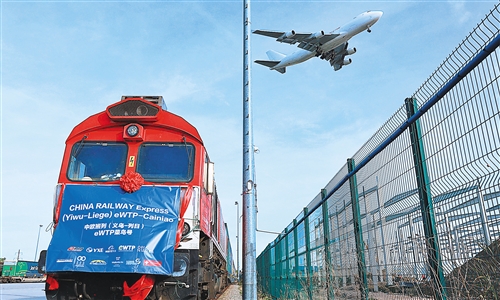 10月25日,中欧班列(义乌—列日)“世界电子贸易平台(eWTP)菜鸟号”首趟列车抵达比利时列日物流多式联运货运场站。这是首个贯通中国长三角区域、中亚和欧洲并服务于跨境电子商务的专列。 新华社记者 潘革平摄
