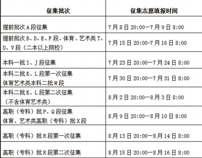 7月11日-12日,平行志愿录取。7月17日-18日,征集志愿录取。