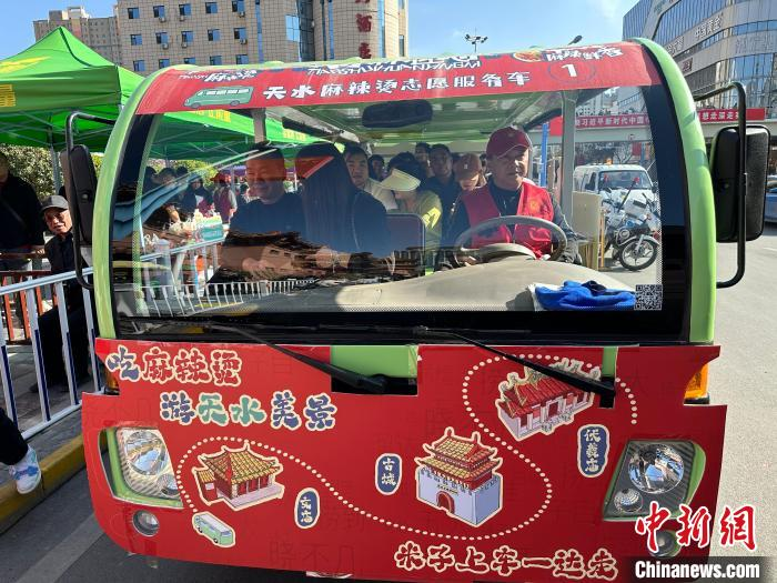 3月25日,游客乘坐的天水麻辣烫志愿服务车。戴文昌 摄