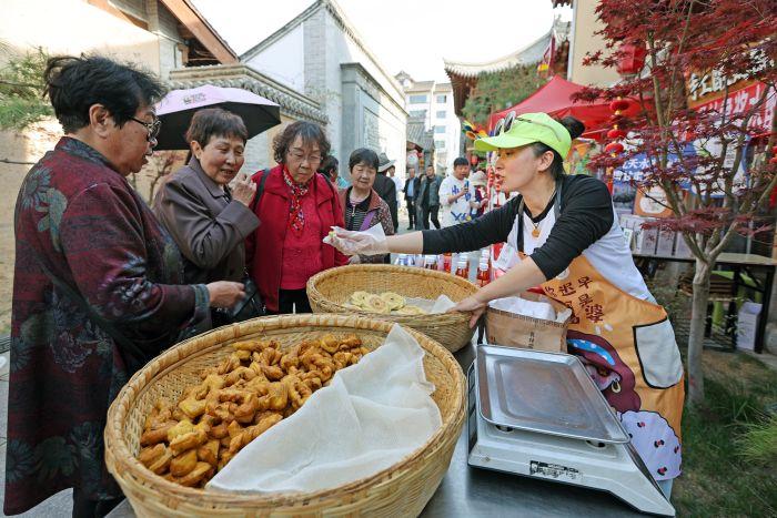 游客在天水古城品尝和购买特色美食。新甘肃·甘肃日报记者 田蹊 摄