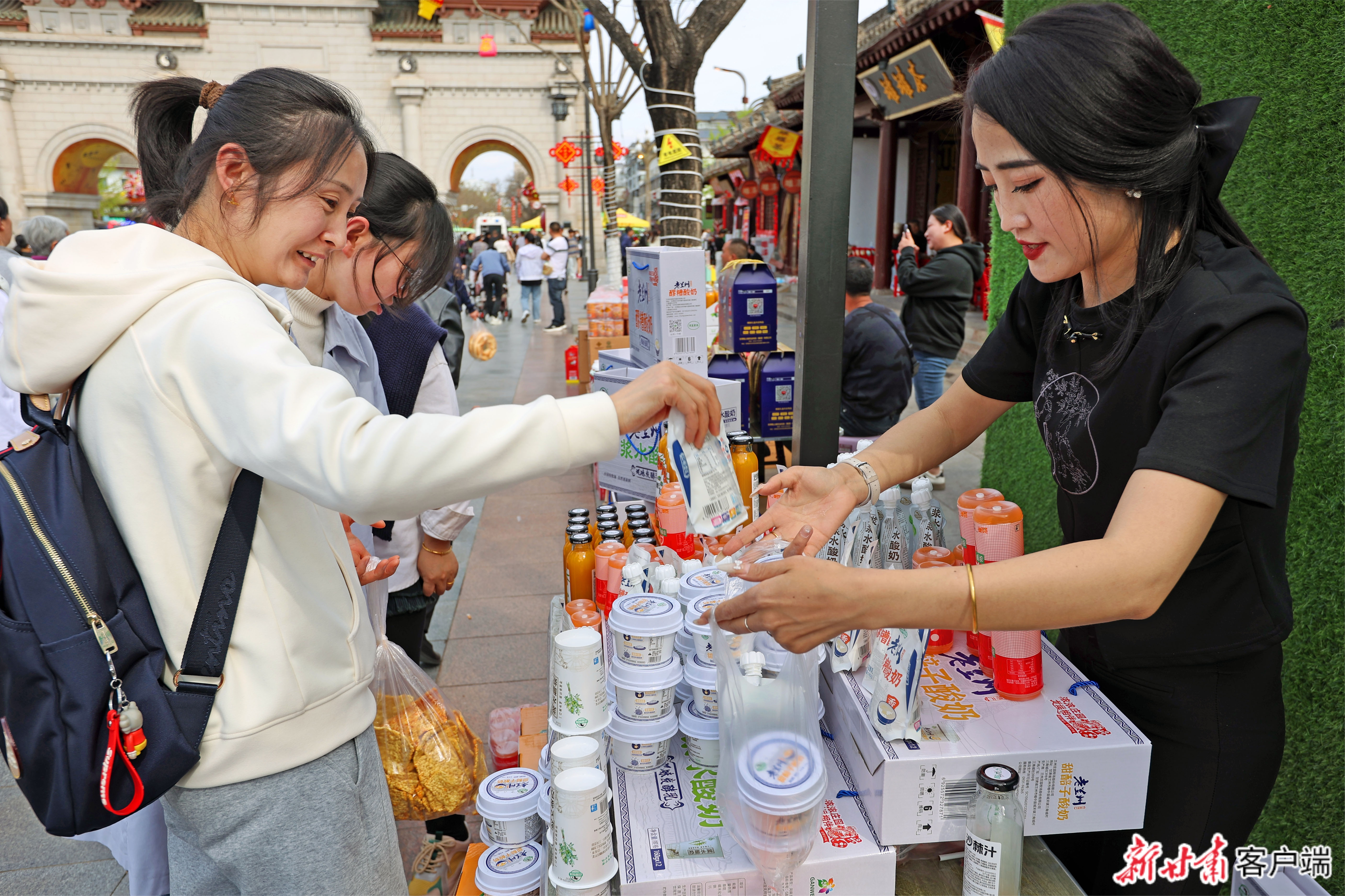 游客在伏羲城购买特色饮品。新甘肃·甘肃日报记者 田蹊 摄