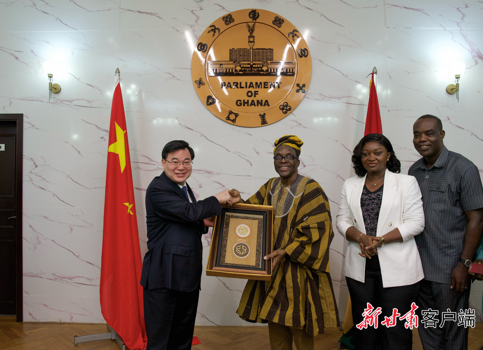 10月26日,代表团拜会了加纳议会议长奥尔本·金斯福德·巴宾。胡昌升介绍了习近平主席在中非合作论坛北京峰会上的重要讲话精神、党的二十届三中全会精神和甘肃经济社会发展情况。他说,议长阁下是中国人民的老朋友,长期以来积极推动中加合作,对甘肃企业在加纳的发展给予了大力支持,我们深表感谢。近年来,加纳议会不断健全法律体系,推动社会更加公正平等。巴宾对代表团的到来表示欢迎,他说,加纳与中国的传统友谊源远流长,甘肃的中甘国际公司、华陇加纳公司在当地建设了许多地标性建筑,为推动加中合作作出了重要贡献。很高兴看到加纳中部省与甘肃省签署建立友好合作关系协议书,希望两省持续加大交流合作力度,推动双方合作开创新局面。