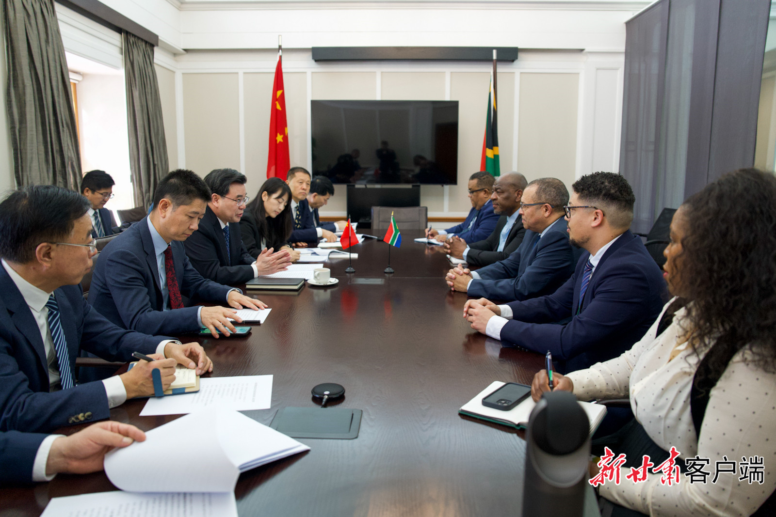豪登省是南非的商业、金融和工业中心。在与豪登省省长潘亚扎·勒苏非会谈时,胡昌升说,中国共产党第二十届中央委员会第三次全体会议对完善高水平对外开放体制机制作出部署,擘画了中国进一步全面深化改革开放的宏伟蓝图。习近平主席在中非合作论坛北京峰会上提出的携手推进“六个现代化”和“十大伙伴行动”,发出了中非共谋开放发展的时代强音。甘肃和豪登的发展方向、产业结构高度契合,希望双方建立健全高层互访、企业对接、产业共建等工作机制,不断深化贸易投资、能源矿产、现代农业、人文交流等领域合作。潘亚扎·勒苏非表示,豪登省高度重视同甘肃的合作,希望在电力技术运用、新能源电厂建设等领域得到支持,促进两省全方位合作交流。
