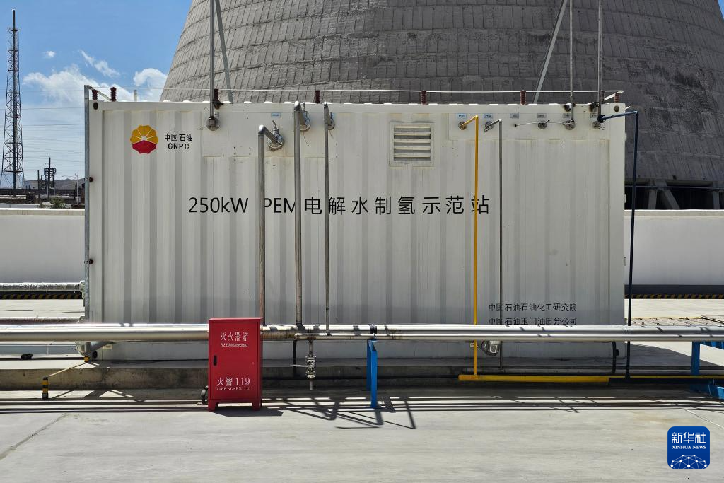 这是在玉门油田拍摄的可再生能源制氢装置质子交换膜电解水制氢系统。新华社记者 王铭禹 摄