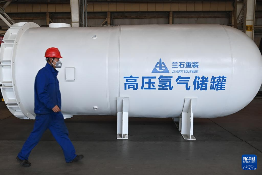 这是在位于兰州新区的兰石集团高端装备产业园拍摄的高压氢气储罐。新华社记者 范培珅 摄