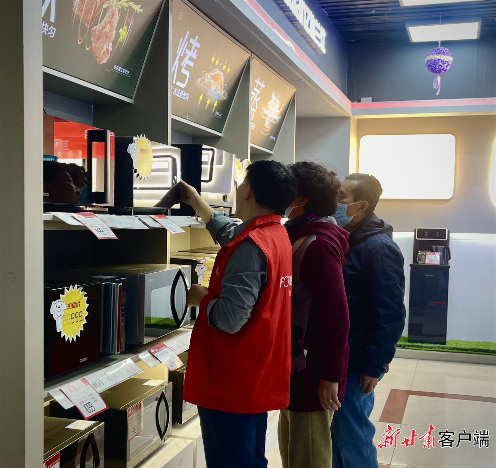 销售员正在为消费者介绍微波炉。新甘肃·甘肃日报记者 李文慧 摄