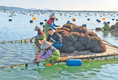 农历正月初八上午9点,福建漳州下西坑村驻村第一书记吴先哲坐上船,向养殖海域驶去。航道两侧,一个个蓝色浮球随海浪起伏,围出一块块海上农田。