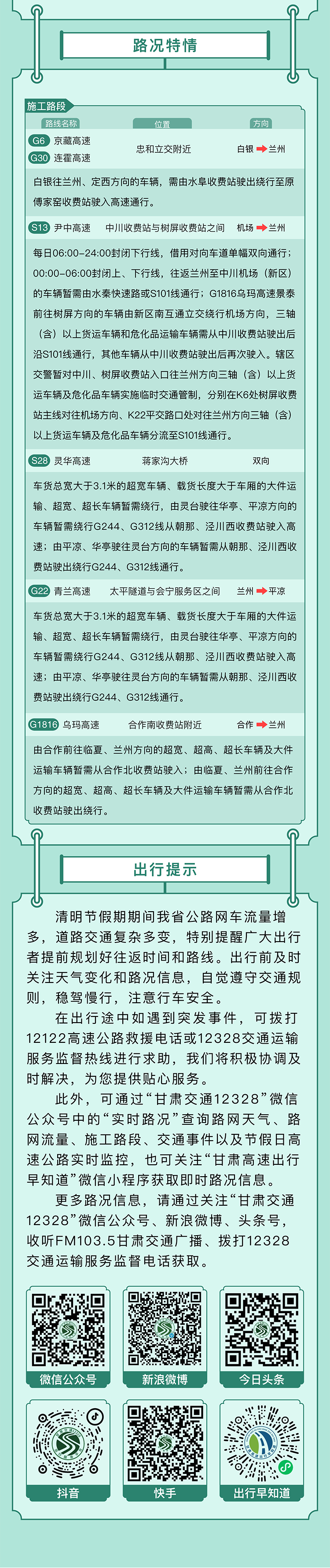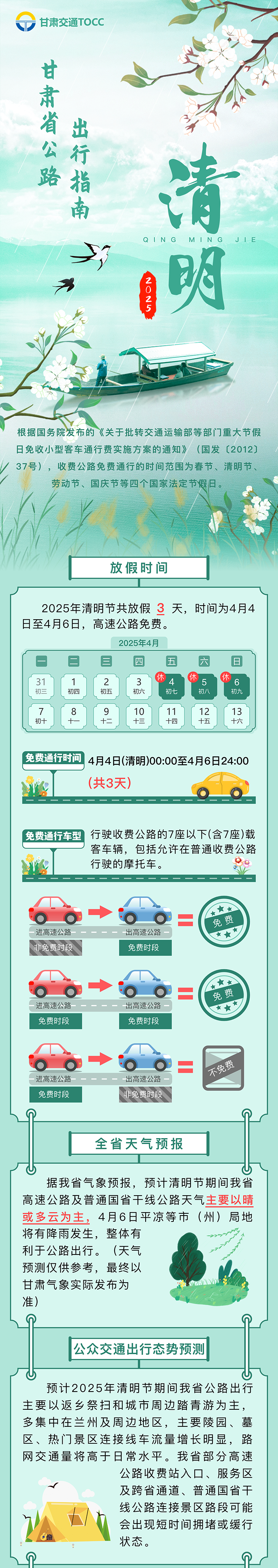 快看!2025年甘肃省清明节公路出行指南来啦!