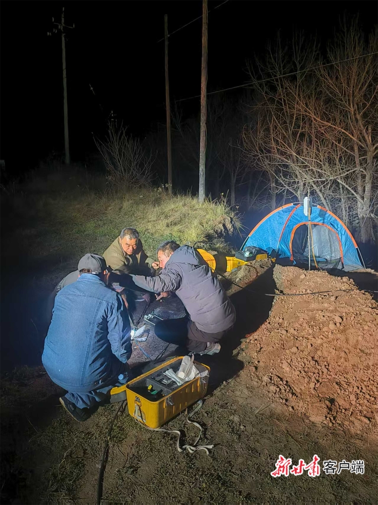 中国广电甘肃公司定西市分公司工作人员进行光缆割接作业。