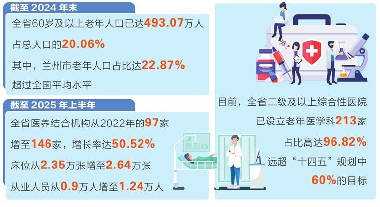截至2024年末,全省60岁及以上老年人口已达493.07万人,占总人口的20.06%。其中,兰州市老年人口占比达22.87%,超过全国平均水平。“养老难、看病难”成为许多家庭的现实困扰。