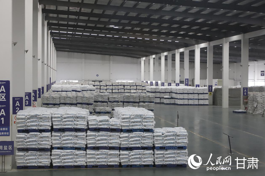 甘肃漳盐胜雪盐业有限公司仓储车间。人民网记者 焦隆摄