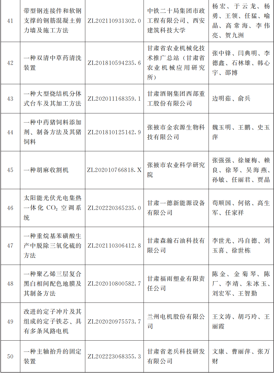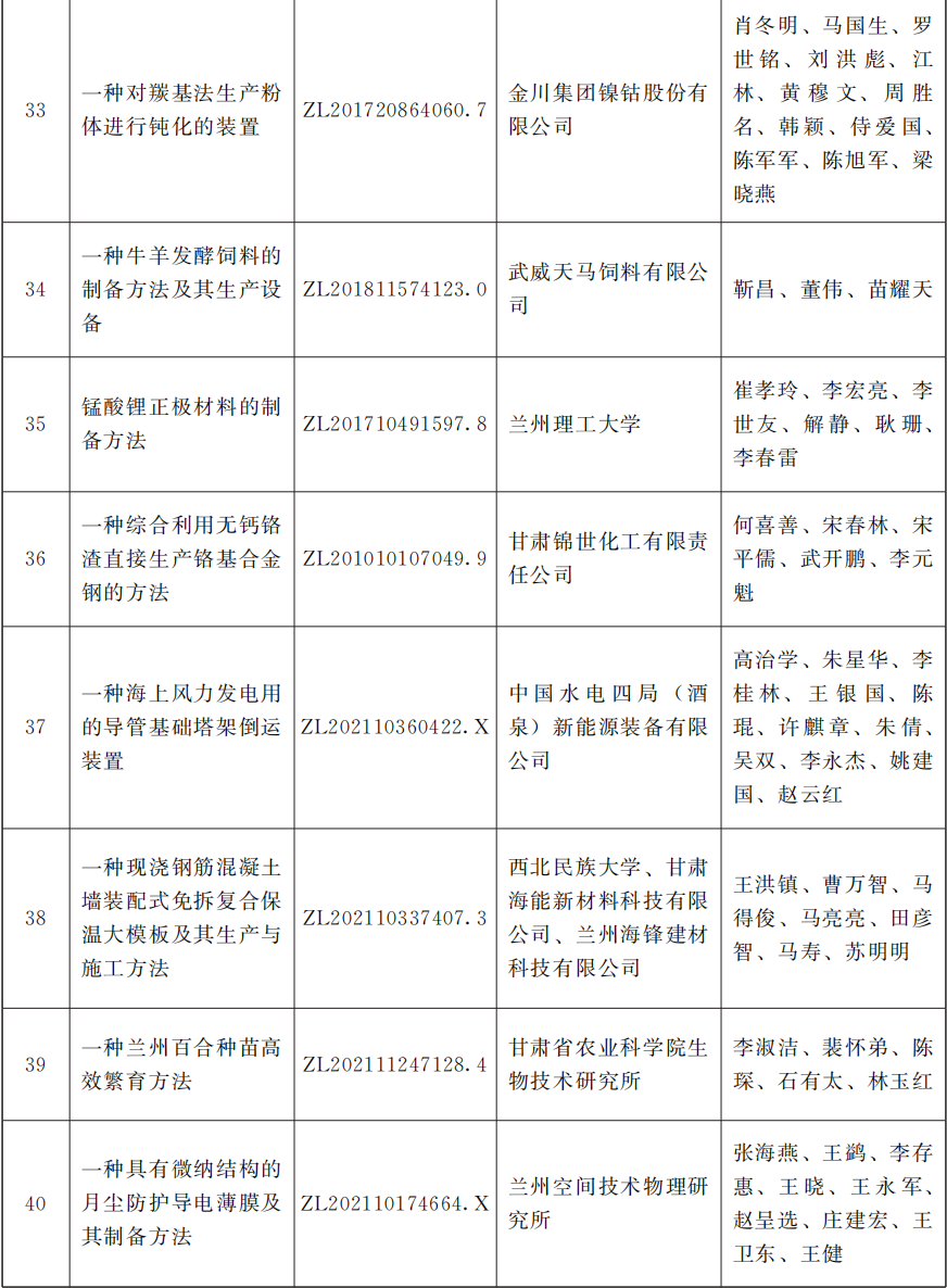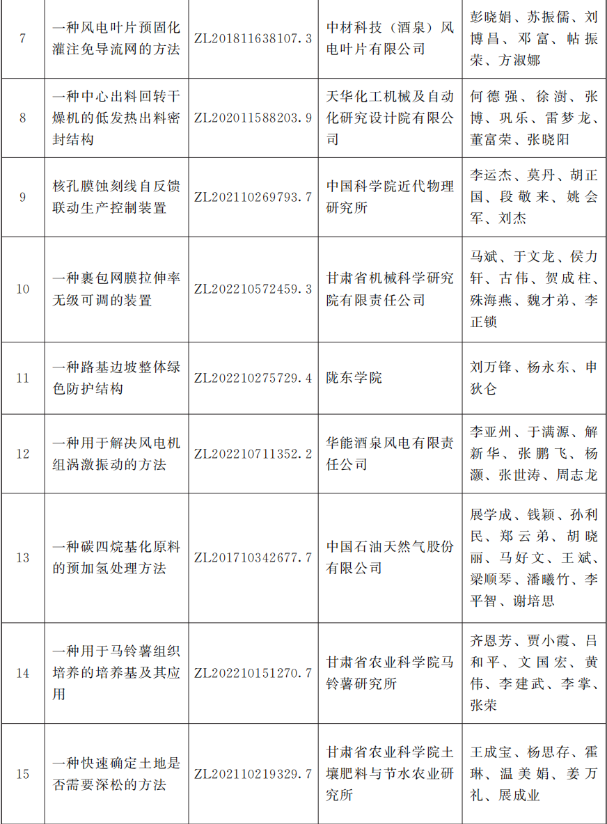 2025年度甘肃省专利奖励名单