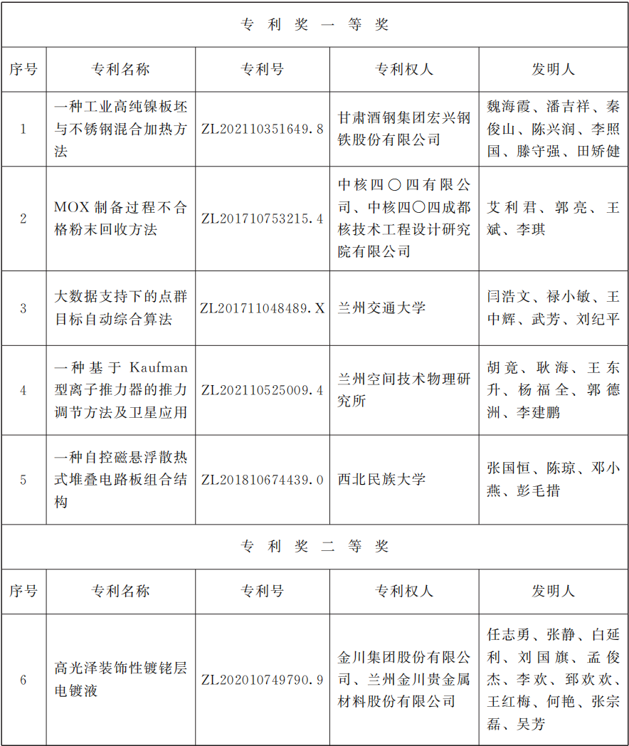 2025年度甘肃省专利奖励名单揭晓