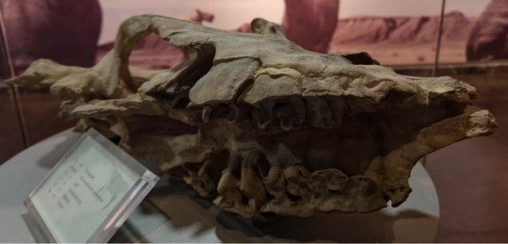 铲齿象头骨化石。