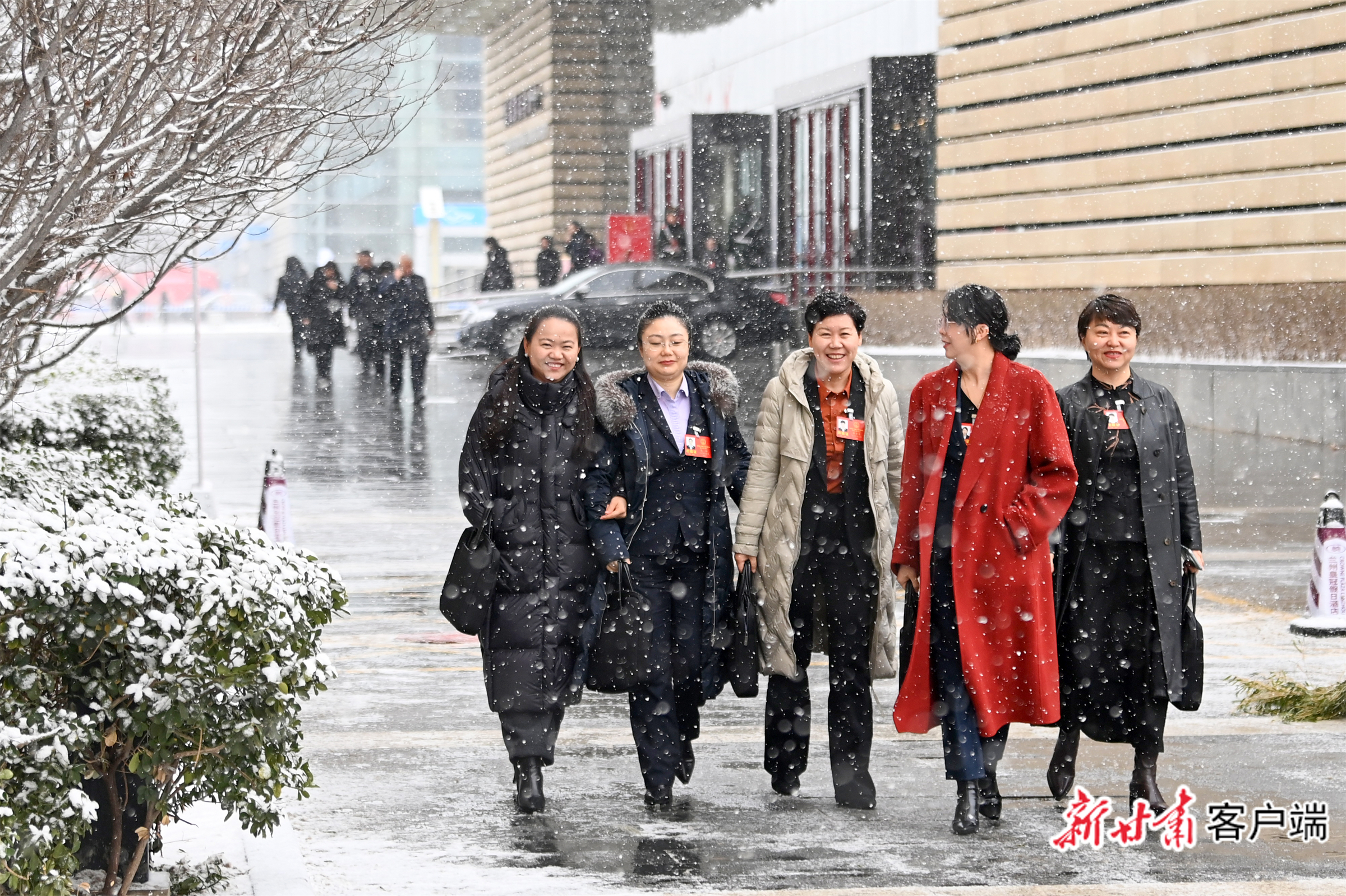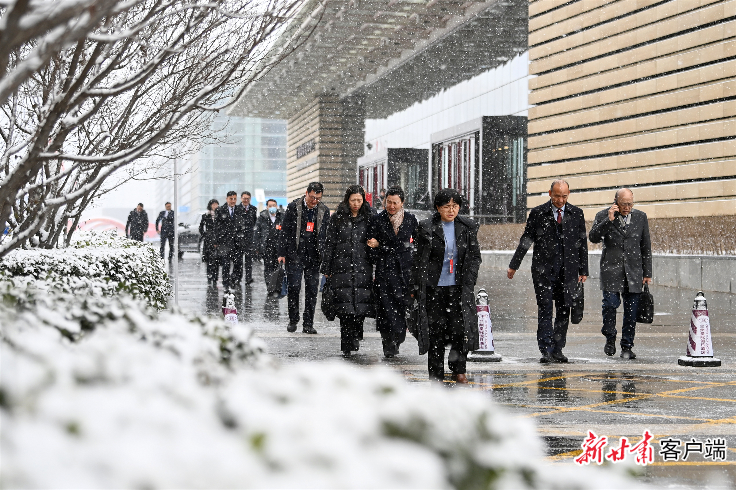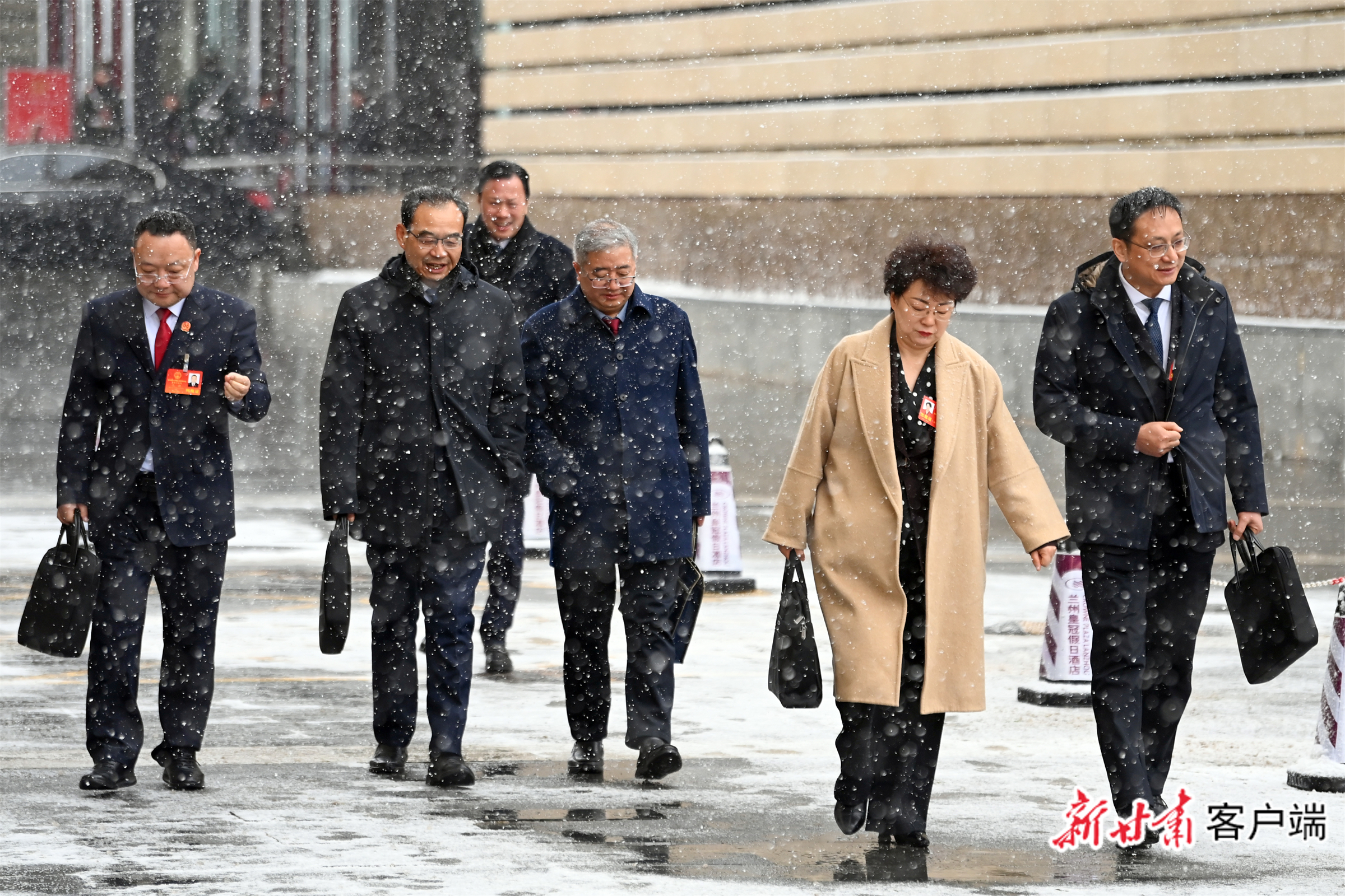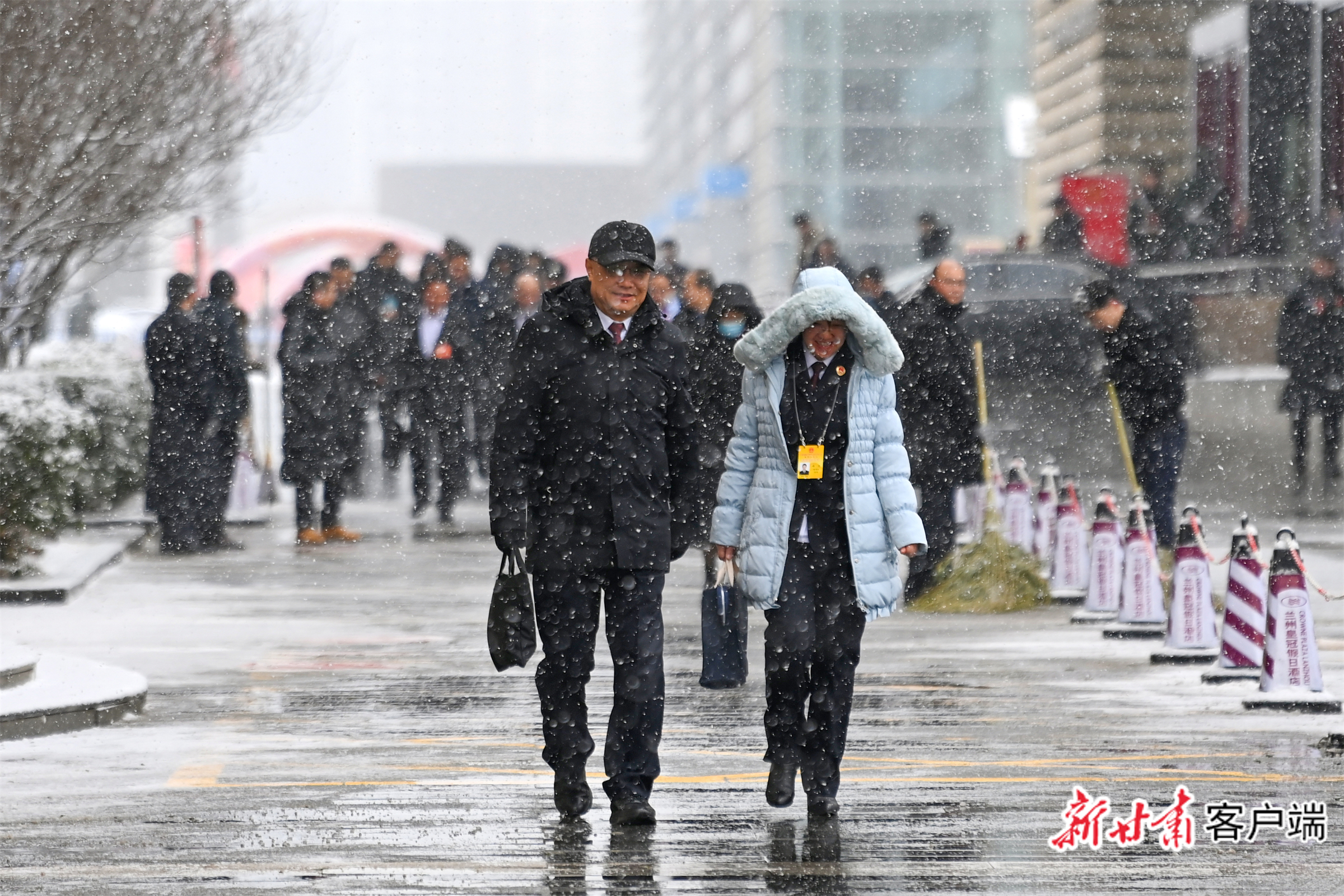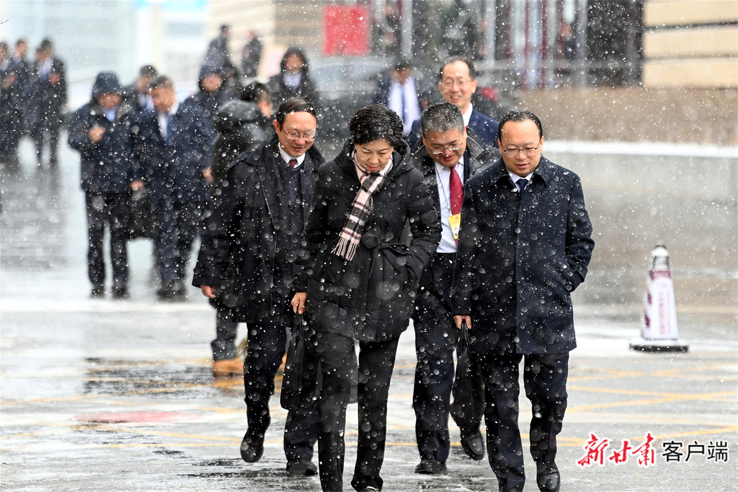 1月29日上午,金城兰州大雪纷飞,出席省十四届人大四次会议的代表们完成上午各项议程后,冒雪走出会场。