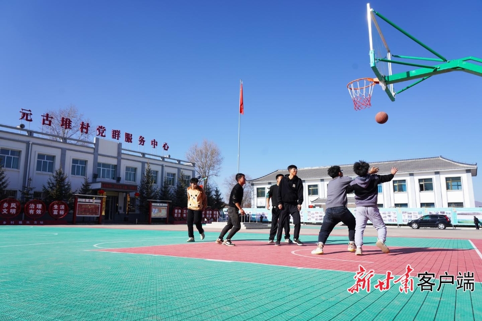年轻人在村广场打篮球。定西市融媒体中心供图