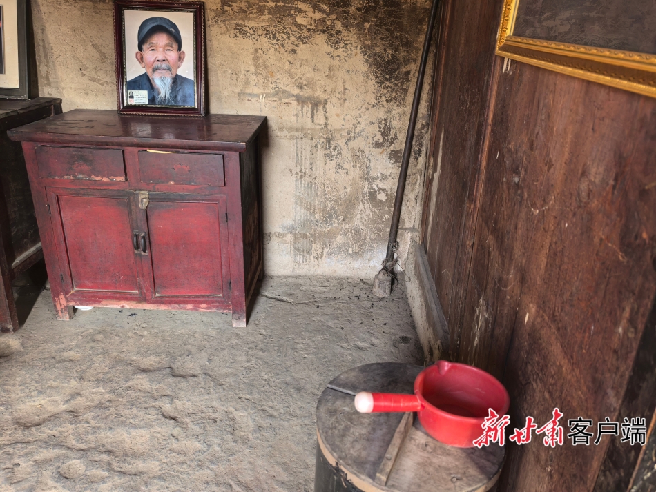 旧屋子低矮局促,堂屋连着卧室,墙面烟黑,地面坑洼,几件旧家什立在墙根,旧水缸、水瓢保留了往昔的时光记忆。