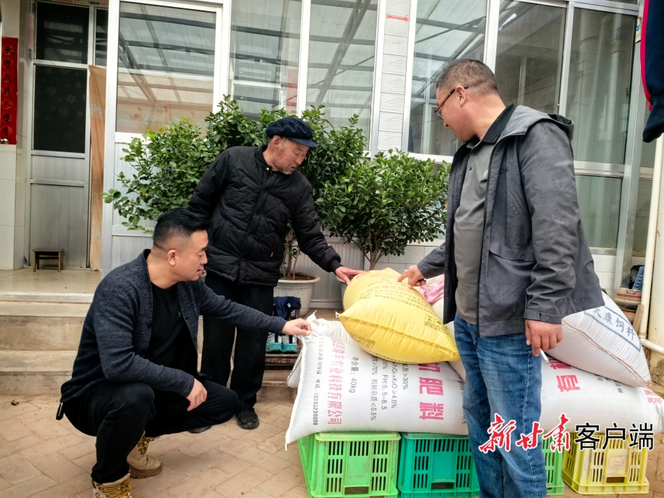 王涛(左一)了解群众冬贮肥料情况。渭源县委宣传部供图