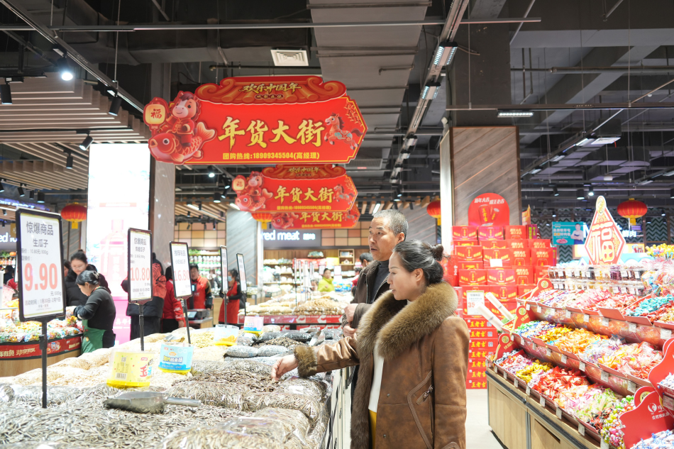 市民在超市挑选心仪的年货(翟娜娜 摄)