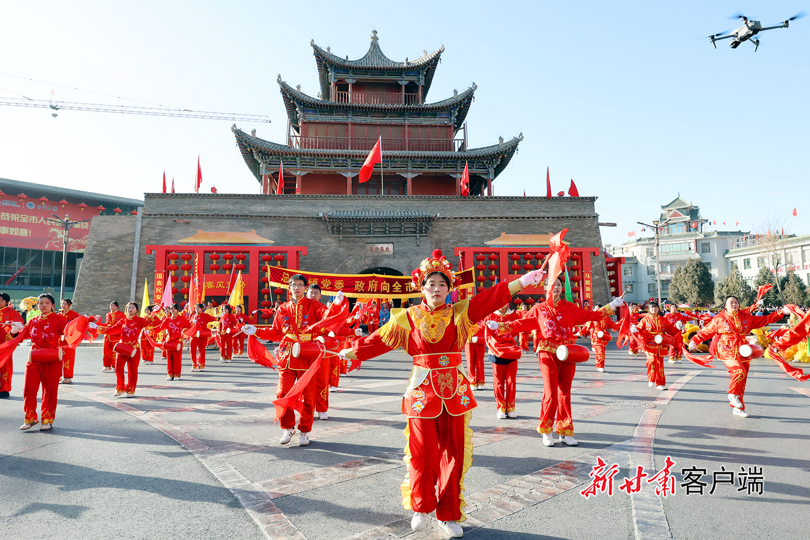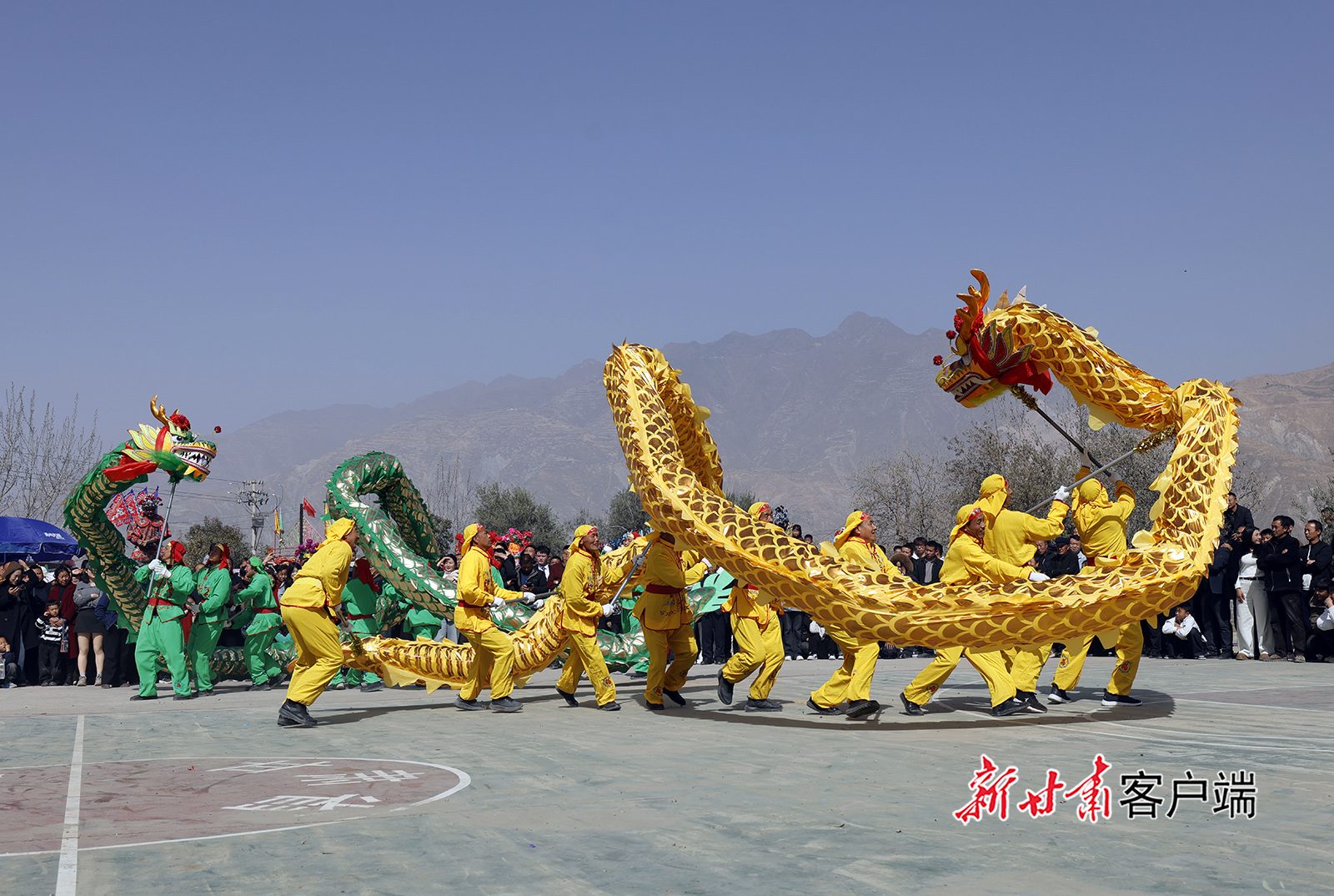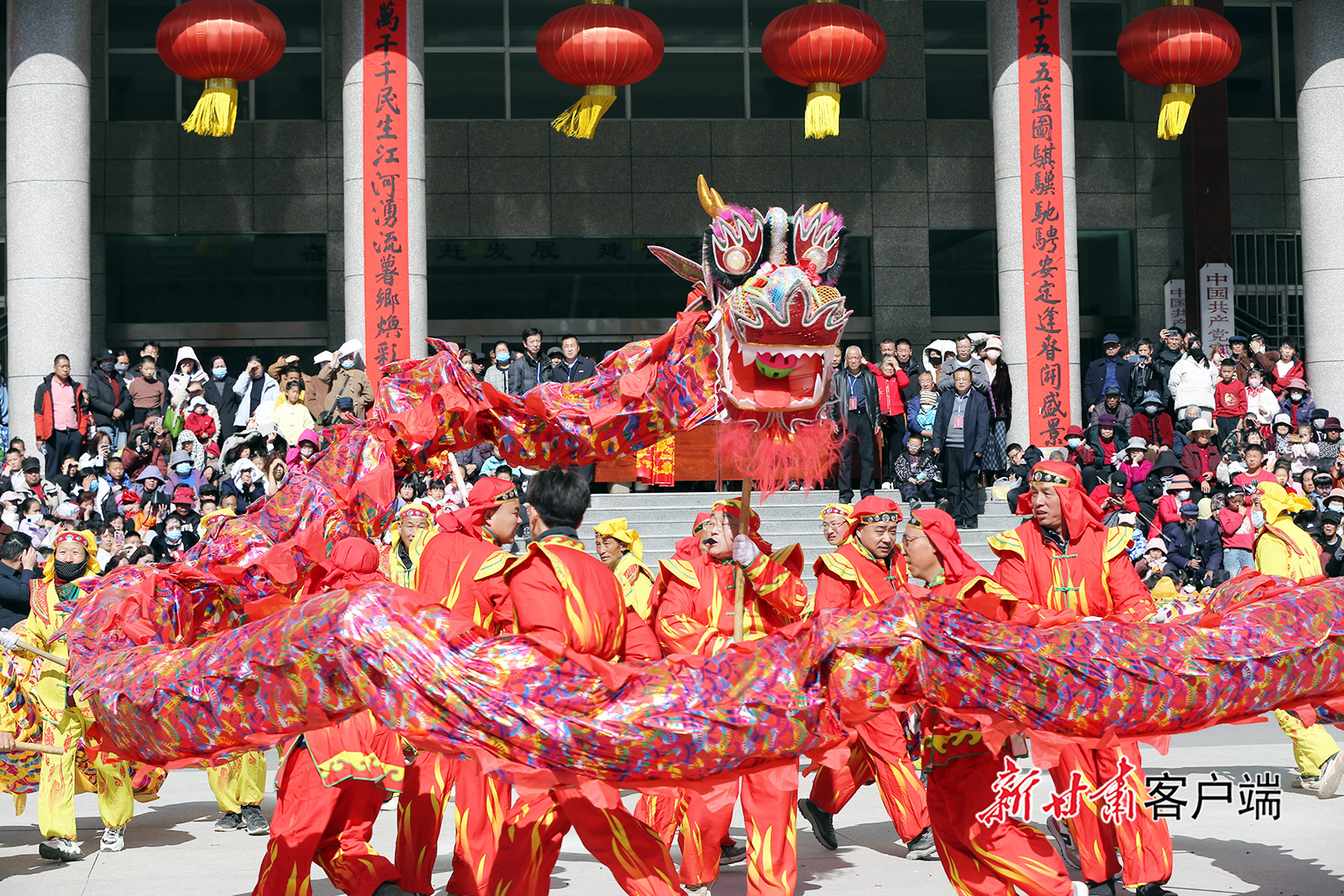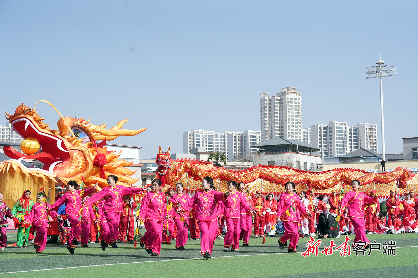2月24日,庆阳市西峰区董志镇庄子洼村、吴庄村社火队轮番上阵,与当地干部职工及周边群众一起共庆贺新春。新甘肃·甘肃日报通讯员 盘小美