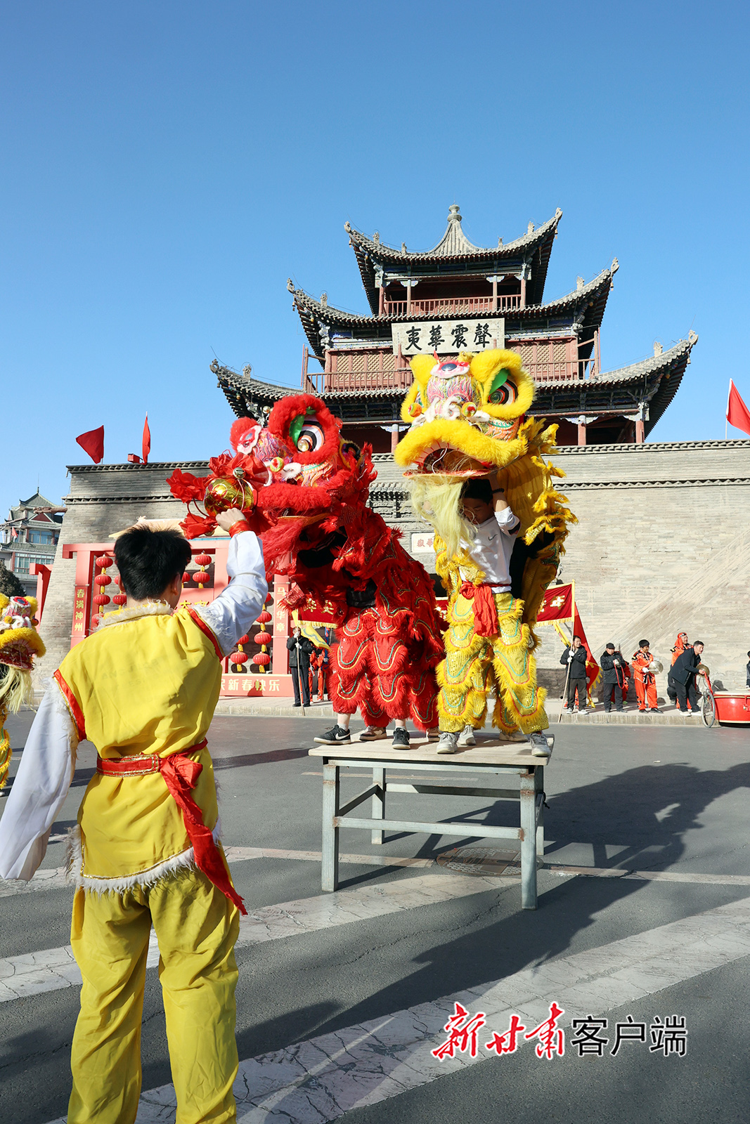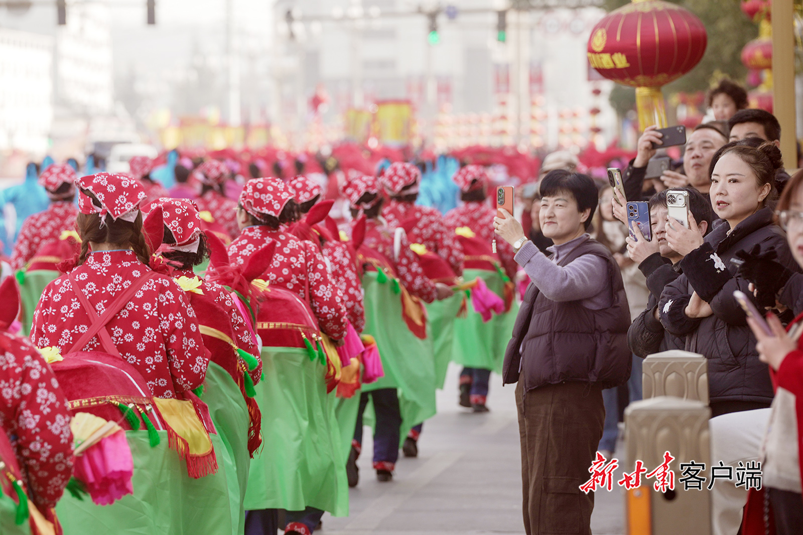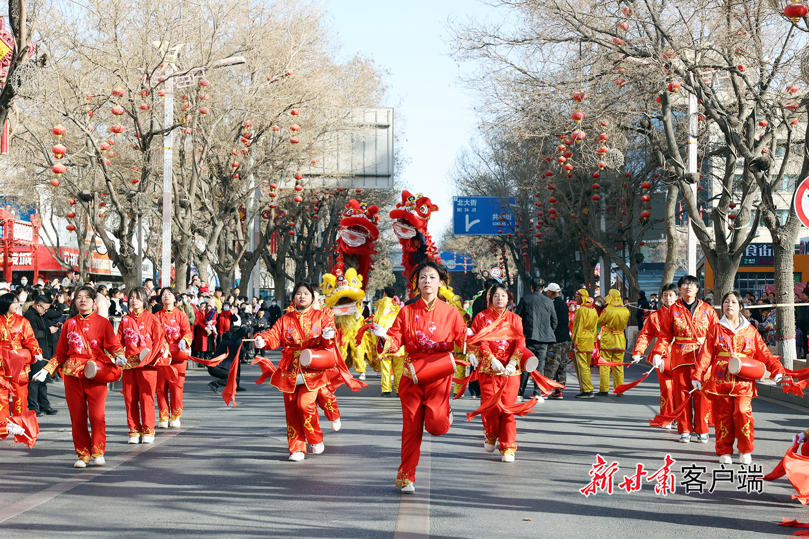 2月24日,酒泉市肃州区铧尖镇、总寨镇、清水镇等乡镇的社火表演队,踏着喜庆的鼓点登场,为市民献上新春的视觉盛宴。新甘肃·甘肃日报通讯员 殷小乔