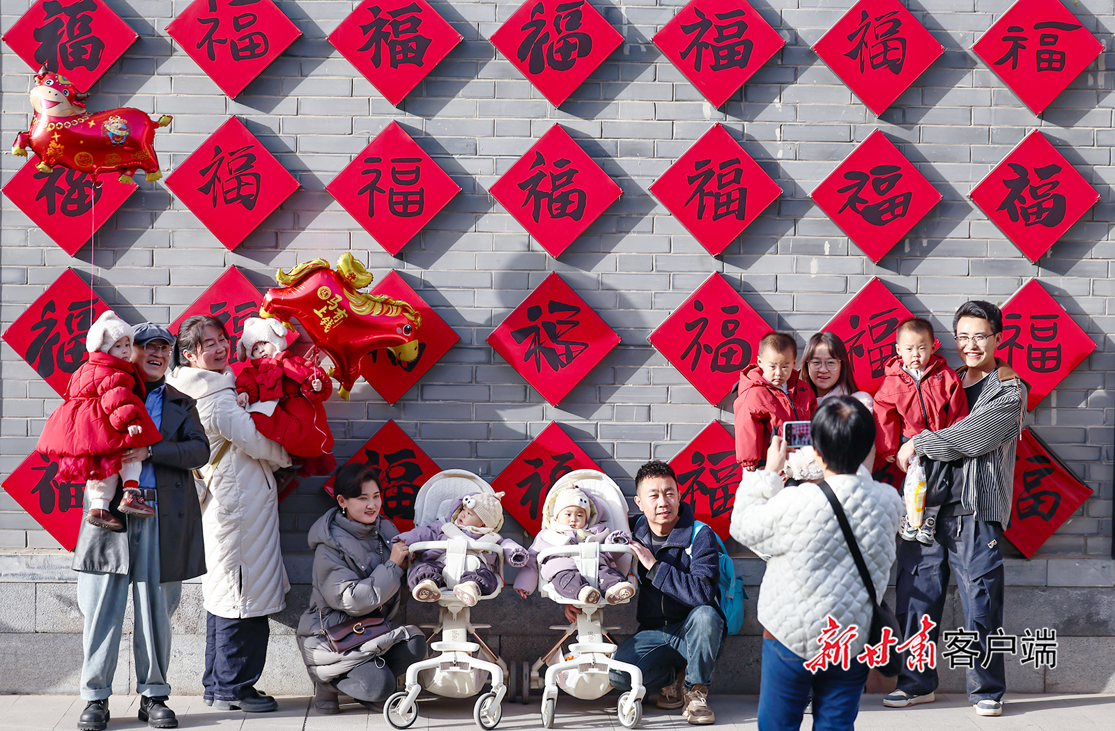 2月23日,兰州市七里河区兰州老街的福字墙前,三对双胞胎在此不期而遇,三家人一起合影定格欢乐与温情。新甘肃·甘肃日报通讯员 侯崇慧