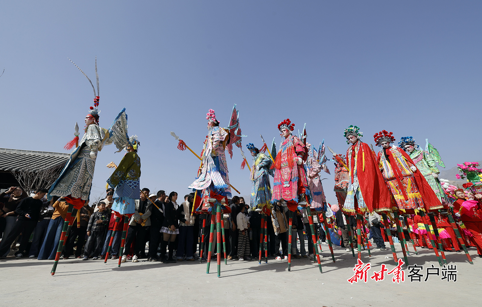 2月25日,在清水县陇东镇赵峡村,社火队员正在进行精彩的踩高跷表演。新甘肃·甘肃日报通讯员 雷金锋 赵甲伟