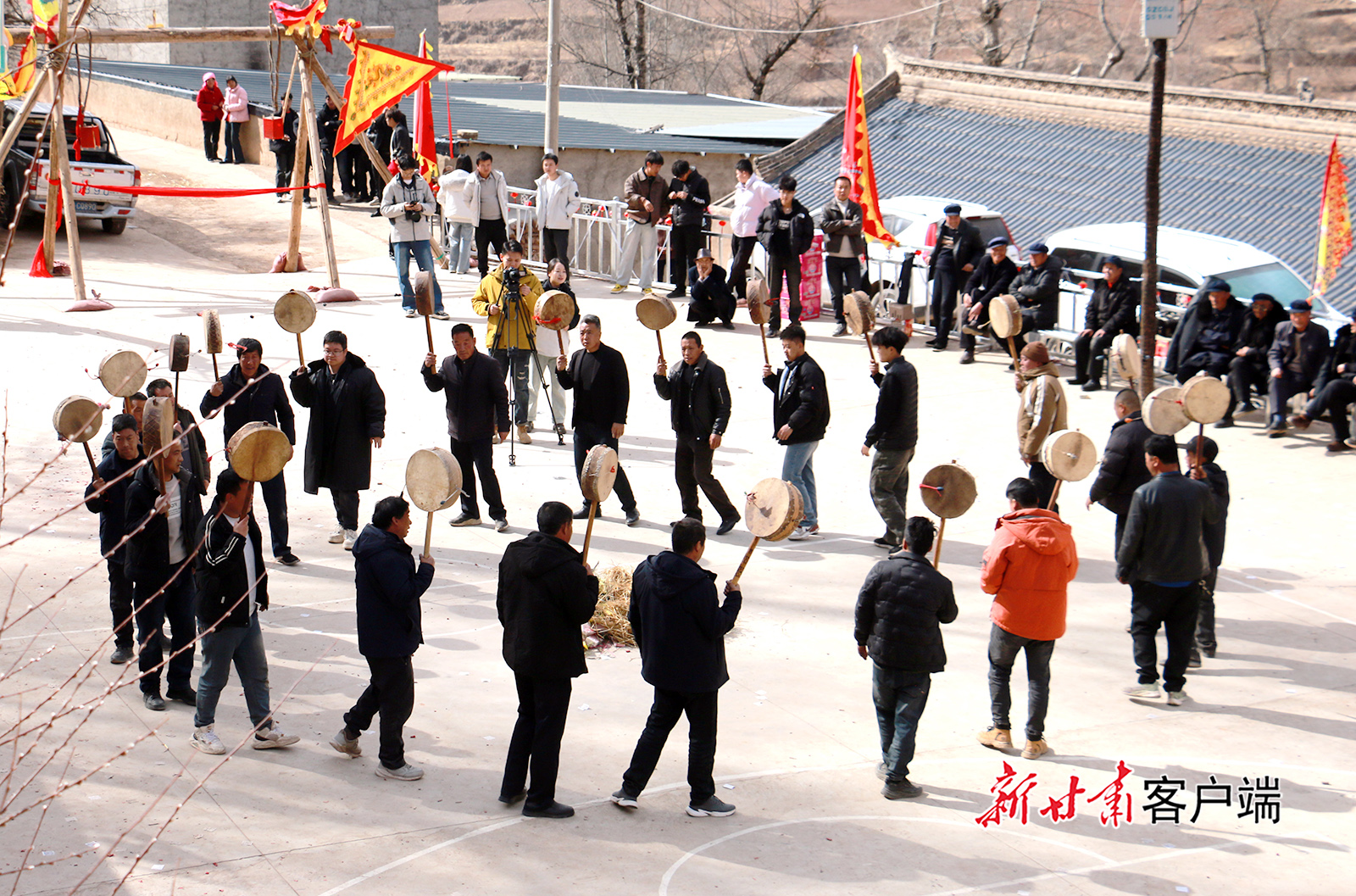2月25日,岷县中寨镇乔家沟村村民举行巴当舞表演,让更多的人感受到国家级非物质文化遗产保护项目的独特艺术魅力。新甘肃·甘肃日报通讯员 马万安