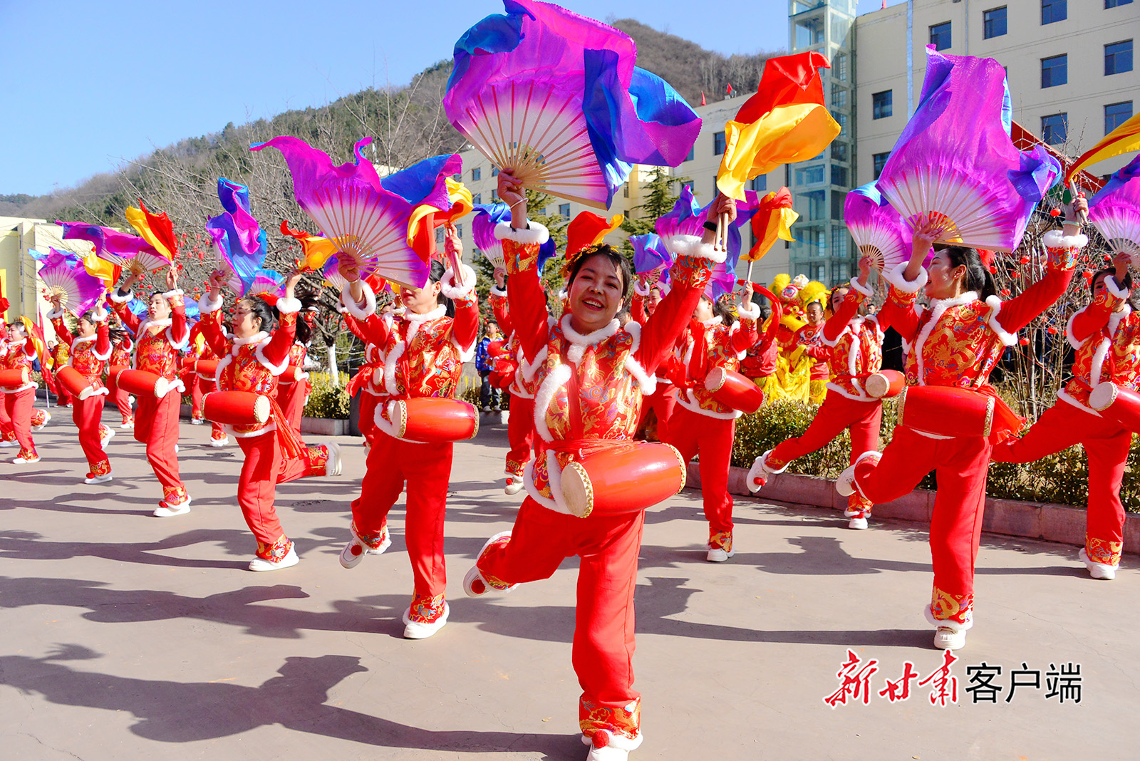 2月24日,农历正月初八,中国华能华亭煤业公司后勤服务公司社火队用精彩的表演,为矿区职工家属送去新春的祝福。新甘肃·甘肃日报通讯员 白银宝