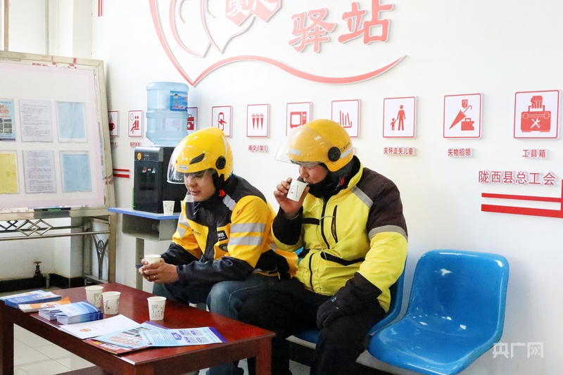 “春节期间单子多,忙起来根本顾不上吃饭。以前只能在路边电动车上随便对付一口,现在有了驿站,进来喝口热水,用微波炉把饭热一下,吃得舒服,心里也热乎。”美团骑手李志彪一边热饭,一边对记者感慨。三年前,为了照顾家庭,他结束了在杭州的数控加工工作回到陇西,成为一名外卖骑手。如今,他每月能挣七八千元,虽然辛苦,但“拿得多,还能顾上家”。谈及工会的服务保障,他赞不绝口:“城里好几个地方都设了骑手驿站,累了能歇脚,渴了有水喝,确实暖心!”