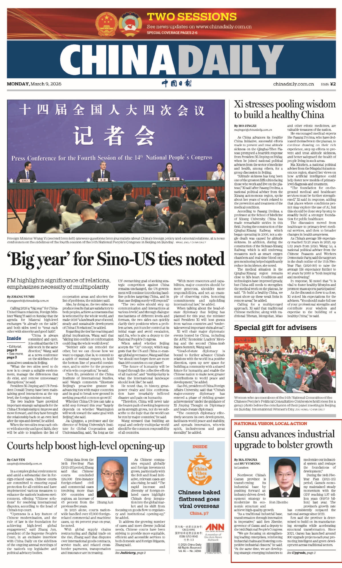 3月9日《中国日报》旗舰版头版版面