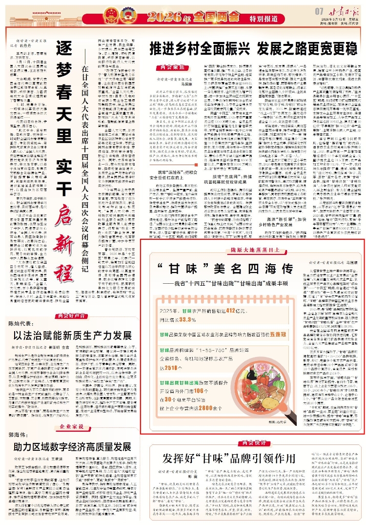 “十五五”期间,我省将持续放大“甘味”品牌“一业兴、百业旺”的溢价效应,进一步开拓市场、提升“甘味”美誉度,努力推动销售额有较大提升,使“甘味”成为陇原广大农民增收致富的“金钥匙”。
