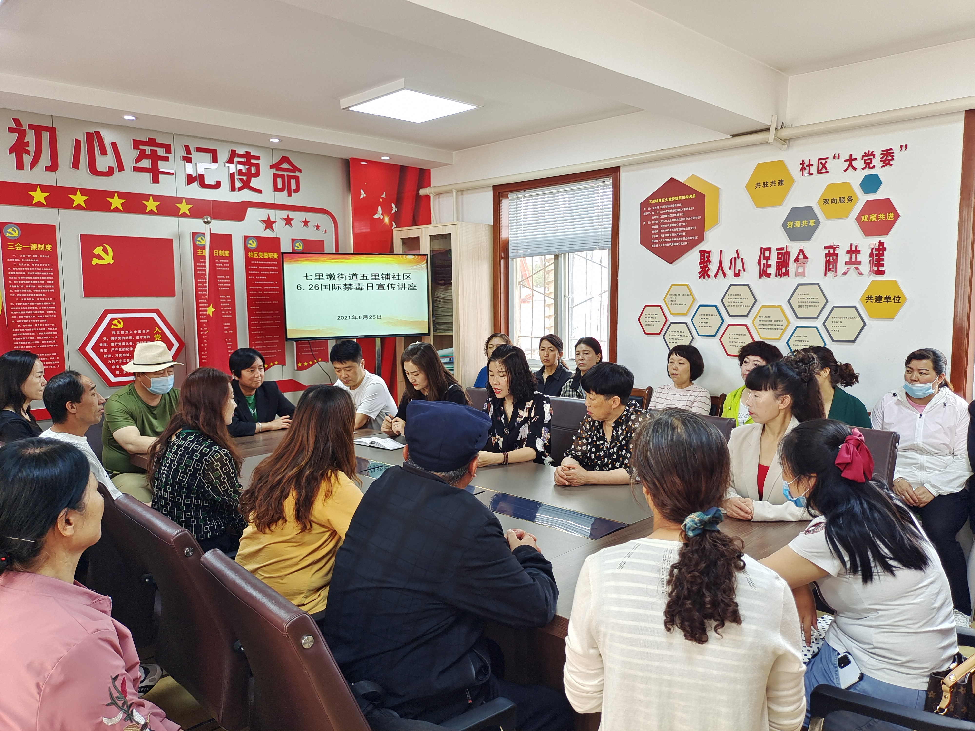 6月25日上午,七里墩街道五里铺社区开展禁毒知识讲座。此次讲座由社区书记朱秀娟主讲,社区在职党员、居民群众、社区工作人员40余人参加。