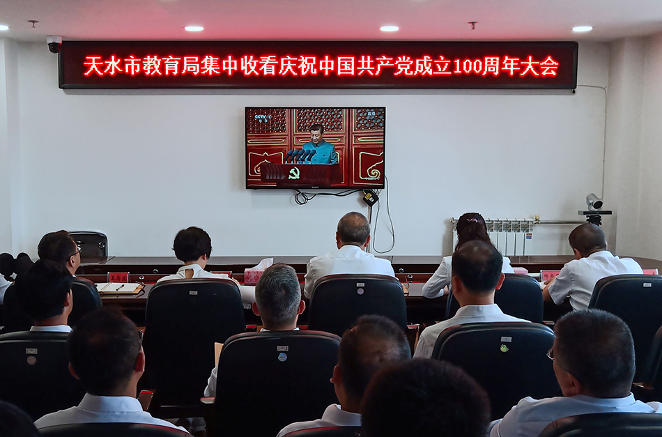 7月1日,天水市教育局组织干部职工收听收看了庆祝中国共产党成立100周年大会直播盛况。