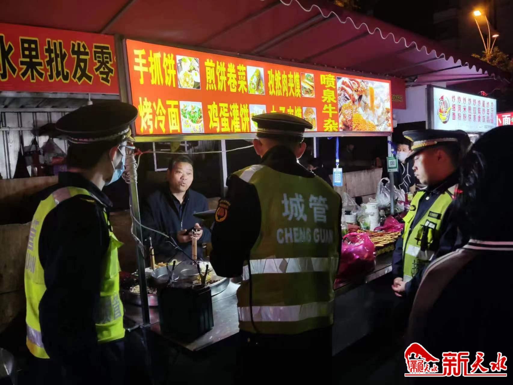 近日,为加强夜市摊点管理,维护夜间市容秩序,秦州区执法局与公安,交警等部门联合执法,对光明巷夜市摊点开展专项整治行动。