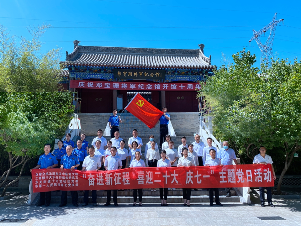 7月1日,秦州区执法局东关中队党支部联合工商银行天水分行机关党总支、天水市第一人民医院第七党支部和东关街道十方堂社区党委党员干部30余人开展“奋进新征程 喜迎二十大 庆七一”参观学习活动。