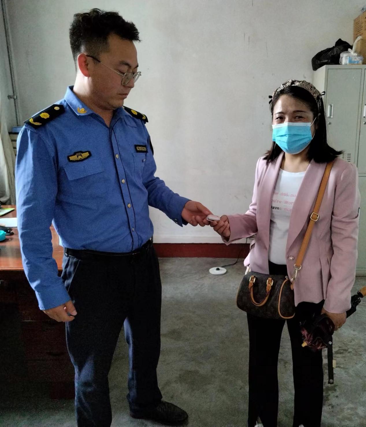 5月20日中午,秦州区执法局大城中队执法人员捡到一块儿童手表通过寻找最终完璧归赵。