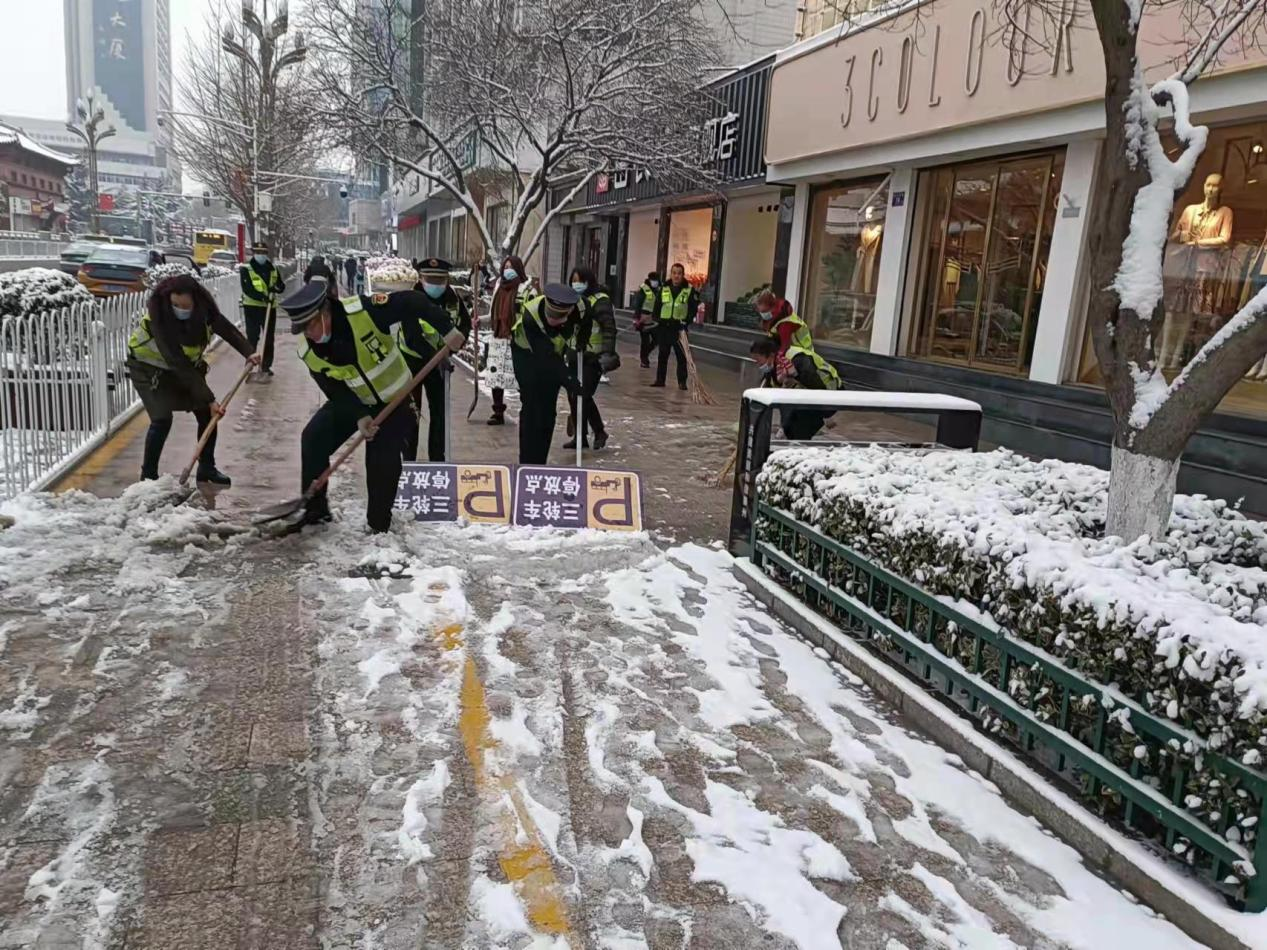 2月18日,秦州区又迎来了一次强降雪天气,市民出行存在安全隐患。为了方便市民安全出行,执法局大城中队以雪为令,迅速部署安排,并组织中队全体人员在辖区开展清除积雪活动。