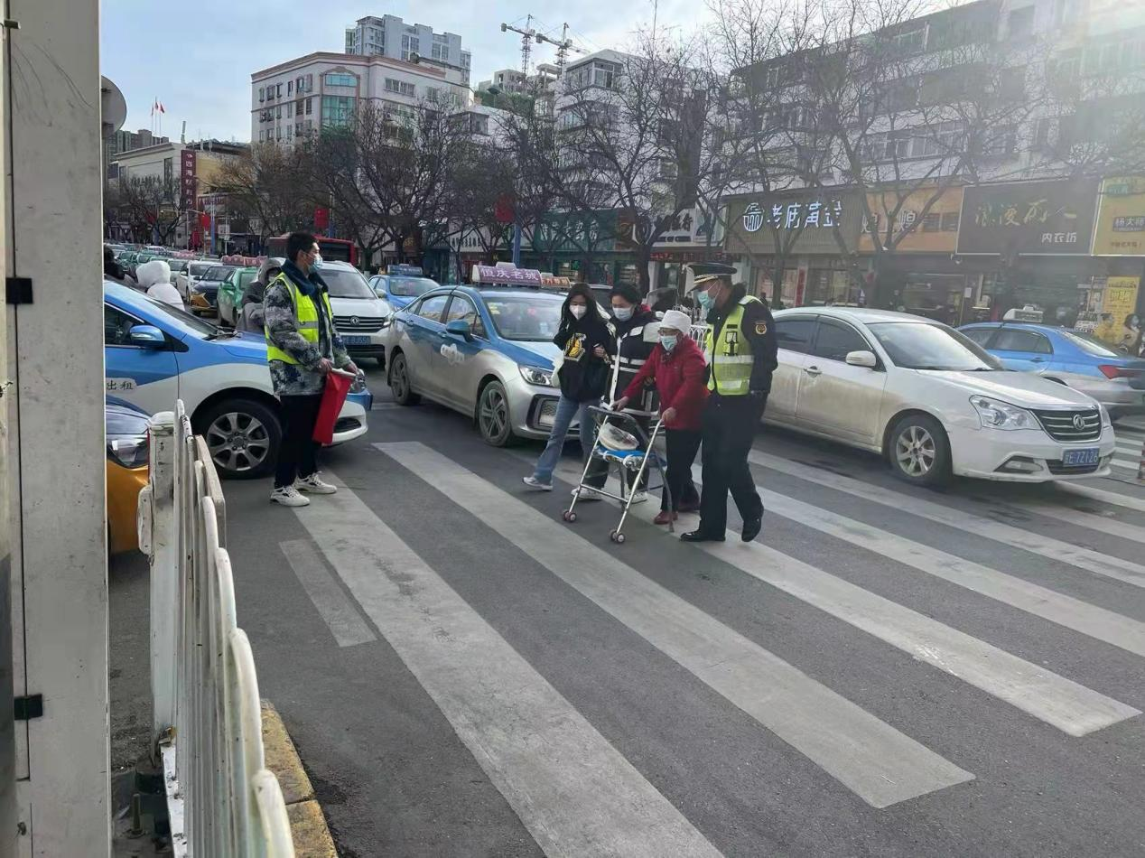 近日,秦州区执法局大城中队执法人员赵兵、何震霞在大众路巡查、执勤时,看见大众路斑马线西侧有一位行动不便的老人要过马路.