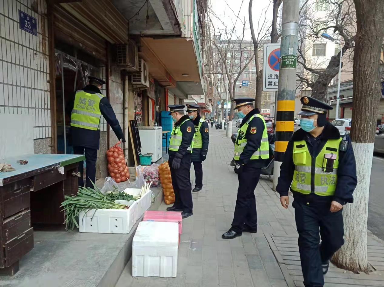 2月14日下午,秦州区执法局西关中队对伏羲庙西门至成纪大道辖区路段进行市容环境卫生秩序集中整治行动。