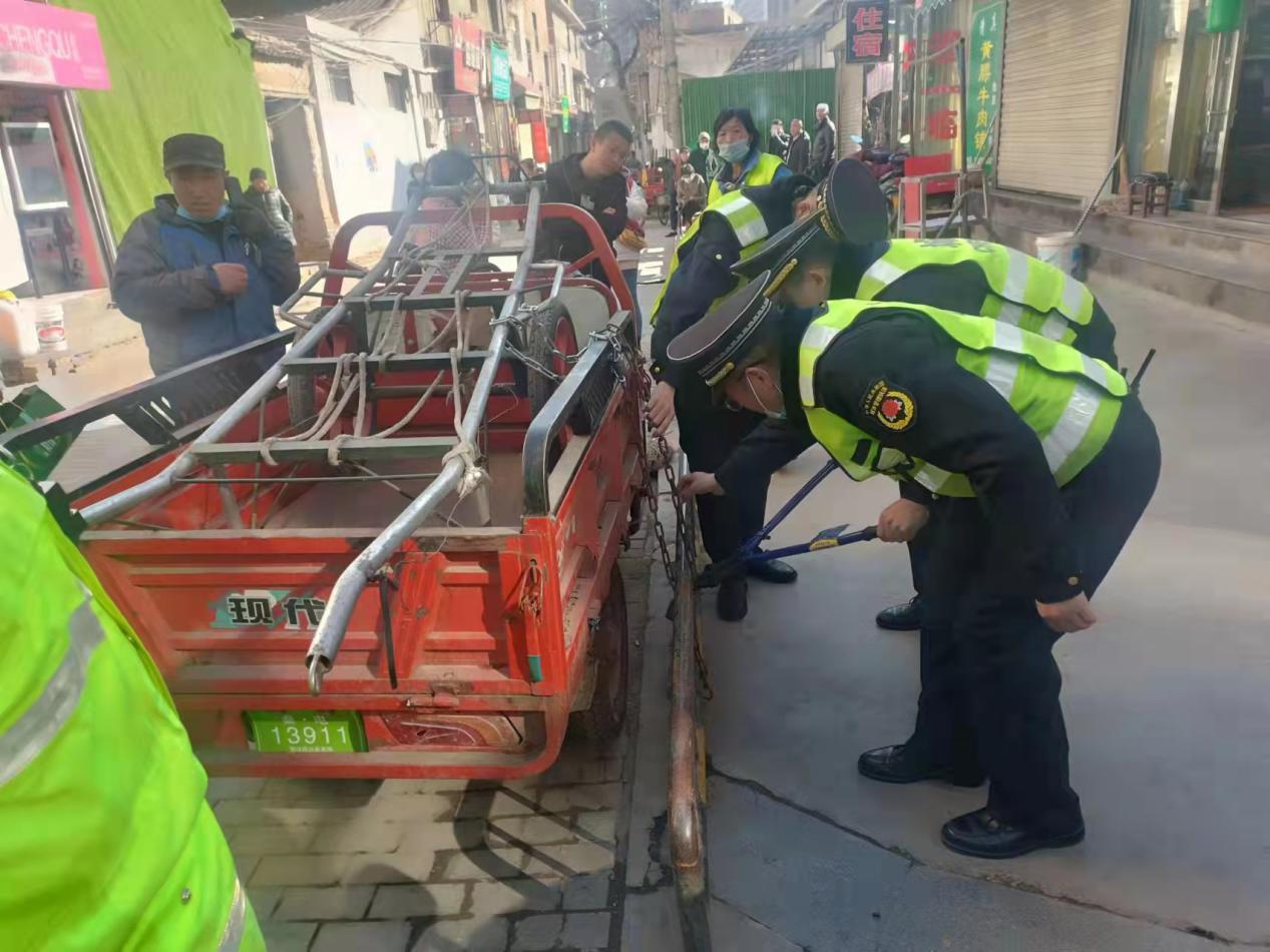 2月22日,秦州区执法局大城中队开展背街小巷市容环境集中整治行动。