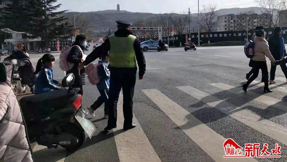 秦州区执法局七里墩中队执法人员在辖区学校门口维护交通秩序,劝导机动车辆礼让行人,为同学们开通安全通道,为学生交通安全“保驾护航”。
