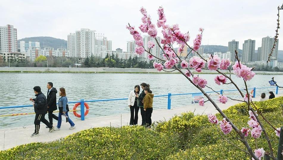 4月5日,市民在天水市藉河湿地公园踏青赏花。放眼望去,公园内春花竞相开放,一幅万物复苏、春意盎然的生态画卷徐徐展开。