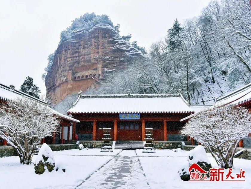 《春雪染麦积》