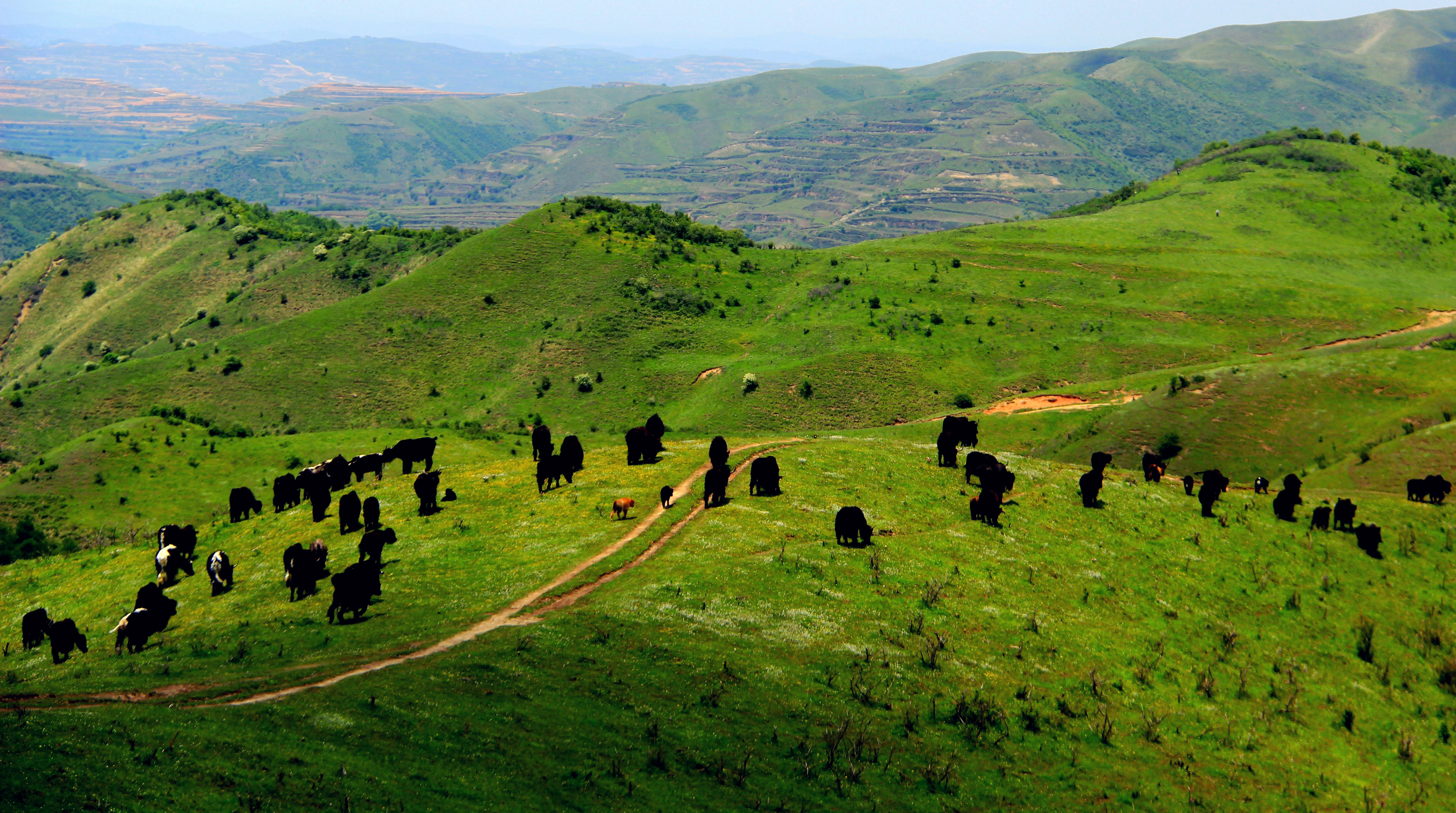 关山,也叫陇山,横亘在陕、甘、宁三省交界处,是泾河和渭河的分水岭,张家川,这片境内遍播古代历史文化遗迹的神奇热土,就位于莽莽关山腹内,远看关山,苍茫雄浑,高耸接天,近而温柔秀媚,凉爽无夏。