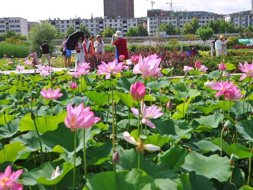 《藉河风情线荷花优雅绽放》