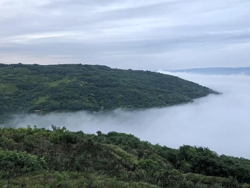 9月21日清晨,秦州区中梁镇南家湾村雾气蒙蒙,成熟的花牛苹果挂着露珠。