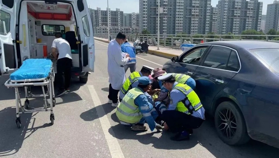5月30日,在秦州区孙家坪大桥上,一辆小轿车将一名在道路中间作业的环卫工人撞伤,经过警医合作,为伤者开辟了生命通道,及时将伤者送到了医院。